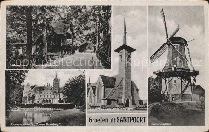 11761389 Santpoort Wustelann met Zwitsersche Boerderij Molen Santhaas Kerk Huize Duin en Kruidberg Windmühle KatCode 11370