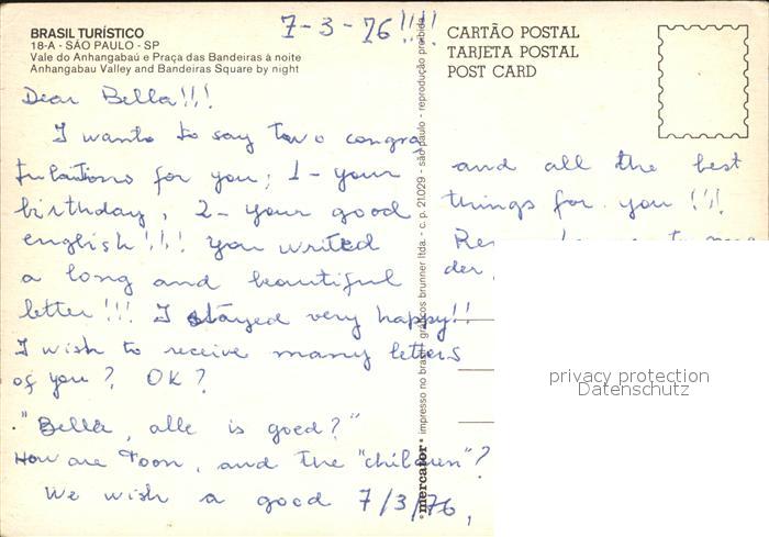 São Paulo Anhangabau Valley and Bandeiras Square by night postalisch nicht gelaufen Erhaltung siehe scans