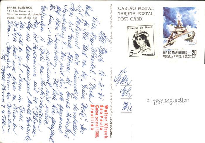 alte Postkarte São Paulo Fliegeraufnahme Skyline postalisch gelaufen Erhaltung siehe scans