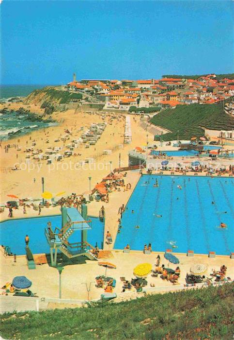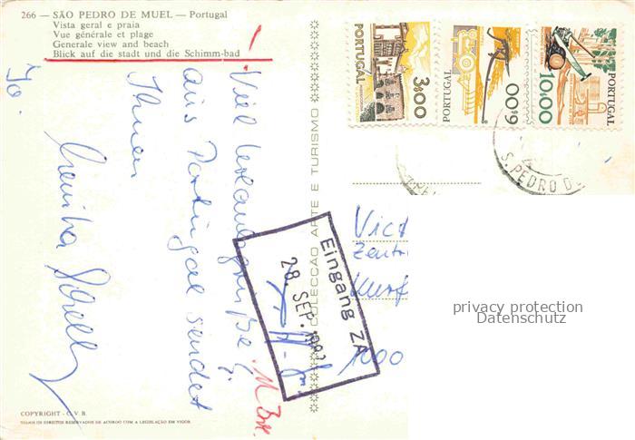 Sao Pedro de Muel PT Blick auf Stadt und Schwimmbad Fliegeraufnahme postalisch gelaufen Erhaltung siehe scans [WerneD78] alte Postkarte Wern Katcode 11420