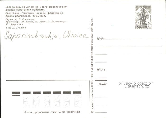 Saporischschja Denkmal postalisch nicht gelaufen Ganzsache (eingedruckte Briefmarke) Erhaltung siehe scans