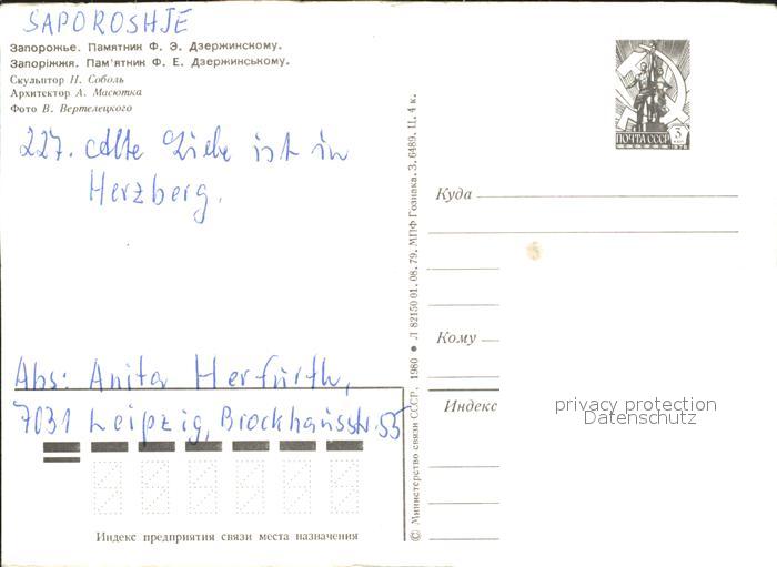 Saporischschja Denkmal postalisch nicht gelaufen Erhaltung siehe scans