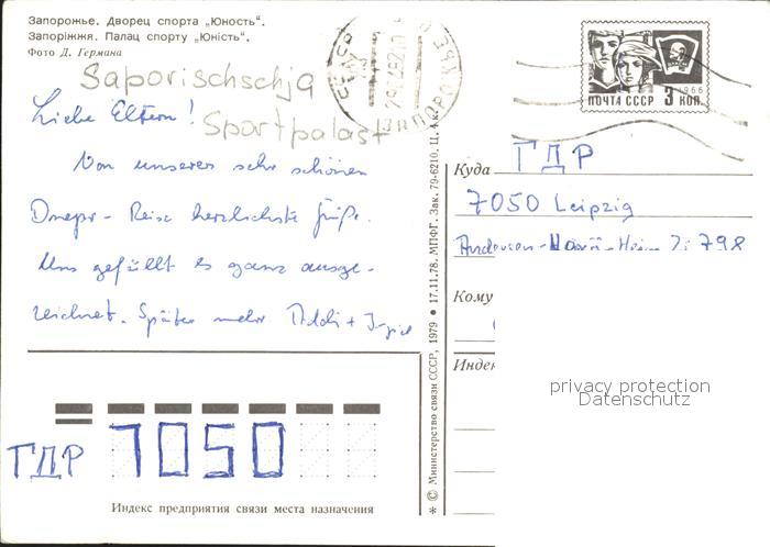 old postcard Saporischschja Sportpalast Wasserspiele postalisch gelaufen Erhaltung siehe scans