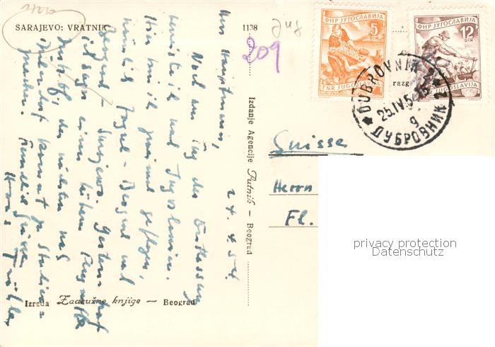 73857853 Sarajevo Bosnia-Herzegovina Vratnik postalisch gelaufen Erhaltung siehe scans [FriedD77] old postcard Frie Katcode 11080