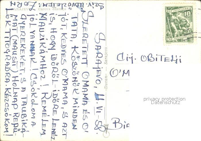 old postcard Sarajevo Careva dzamija postalisch gelaufen Erhaltung siehe scans
