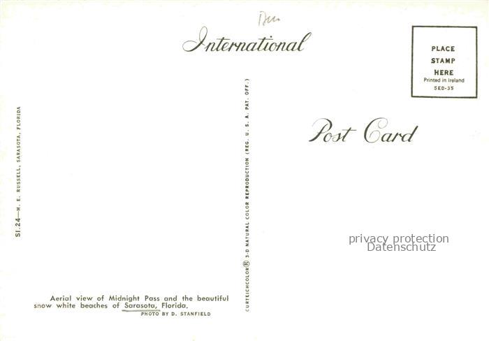 74092132 Sarasota Bay Florida USA Fliegeraufnahme Midnight Pass postalisch nicht gelaufen Erhaltung siehe scans [WerneD78] KatCode: 14140110000000