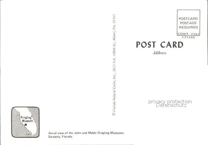 72070973 Sarasota Fliegeraufnahme Ringling Museum postalisch nicht gelaufen Erhaltung siehe scans KatCode: 14140110000000