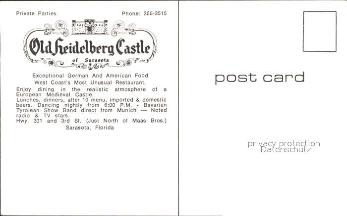 71953290 Sarasota Old Heidelberg Castle postalisch nicht gelaufen Erhaltung siehe scans KatCode: 14140110000000