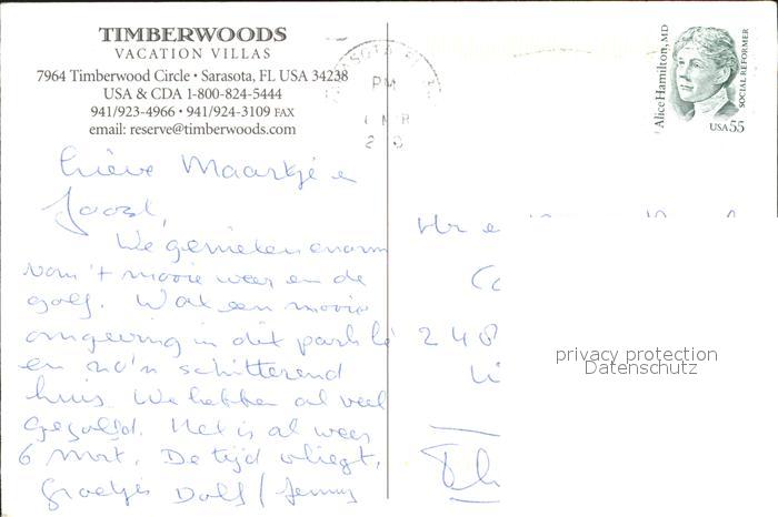 71914961 old postcard Sarasota Timberwoods Vacation Villas postalisch gelaufen Erhaltung siehe scans KatCode: 14140110000000