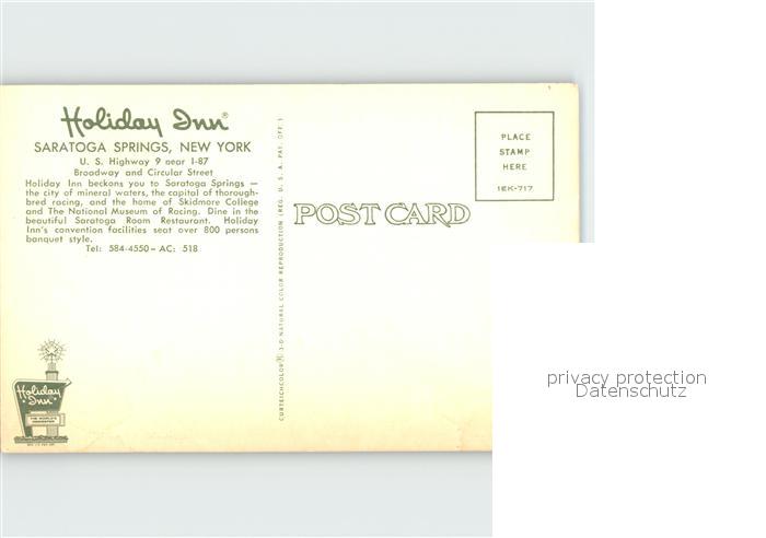 72014347 Saratoga Springs Holiday Inn postalisch nicht gelaufen Erhaltung siehe scans KatCode: 14140340000000