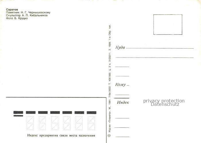 74042120 Saratov RU Denkmal N.H. Tschernischewskomu postalisch nicht gelaufen Erhaltung siehe scans [IrynaD87] KatCode: 11440