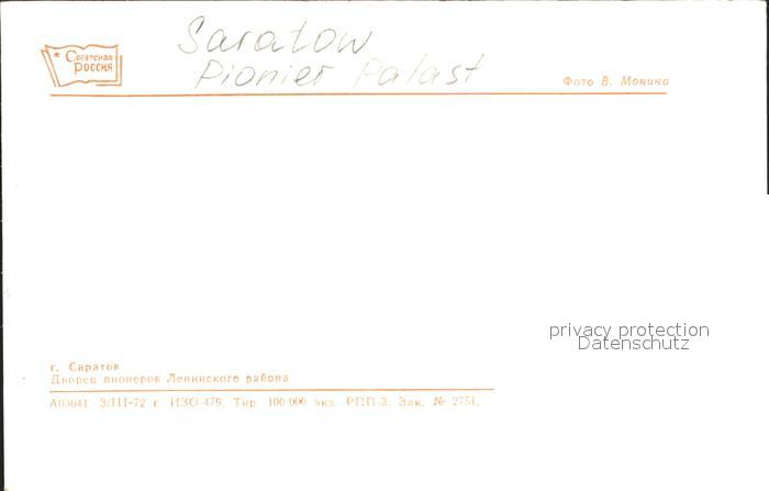 Saratow Pionier Palast postalisch nicht gelaufen Erhaltung siehe scans