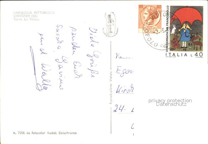 old postcard Sardegna Torre la Pelosa postalisch gelaufen Erhaltung siehe scans