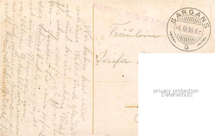 13799357 alte Postkarte Sargans SG Ortsansicht mit Kirche und Schloss Blick gegen Falknis postalisch gelaufen Feldpost – Stempel Erhaltung siehe scans [FriedD77] KatCode: 11470190565668