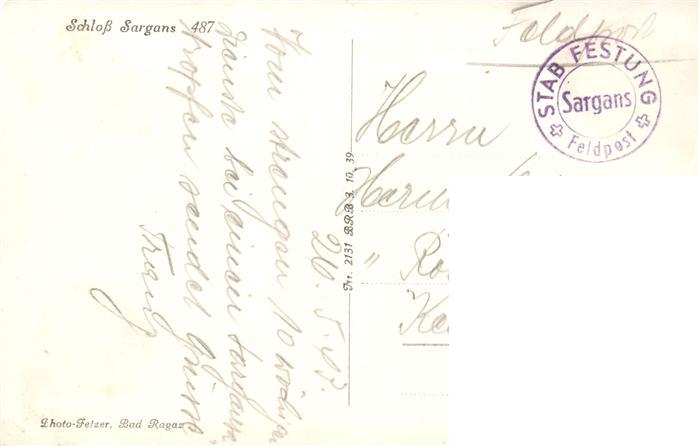 13920666 alte Postkarte Sargans SG Schloss postalisch gelaufen Feldpost – Stempel Erhaltung siehe scans [FriedD77] KatCode: 11470190565668