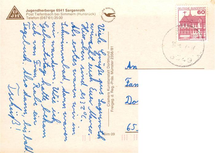 73875148 alte Postkarte Sargenroth Jugendherberge Fliegeraufnahme postalisch gelaufen Erhaltung siehe scans [WerneD78] KatCode: 11110007140134