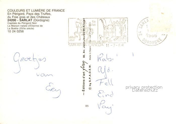 12960972 carte postale Sarlat-en-Perigord Maison natale d Etienne de La Boetie XVIe siecle Collection Couleurs et Lumiere de France postalisch gelaufen Erhaltung siehe scans [FriedD77] KatCode: 11170024424520