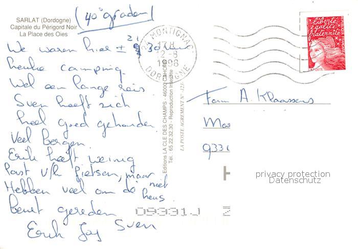 12957029 carte postale Sarlat-en-Perigord Place des Oies postalisch gelaufen Erhaltung siehe scans [FriedD77] KatCode: 11170024424520