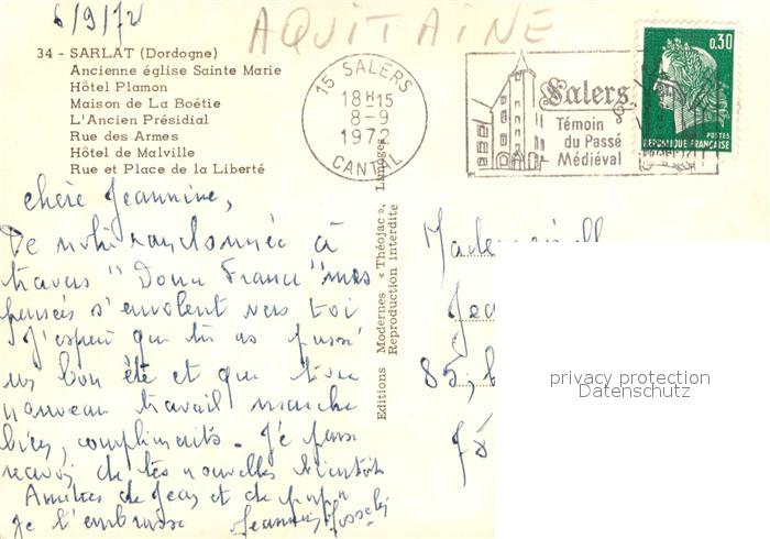 13231638 carte postale Sarlat-la-Caneda Eglise Sainte Marie Hotel Plamon Maison de La Boetie postalisch gelaufen Erhaltung siehe scans [NatalD47] KatCode: 11170024424520