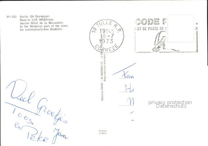 12270514 carte postale Sarlat-la-Caneda Hotel Mirandole postalisch gelaufen Erhaltung siehe scans KatCode: 11170024424520
