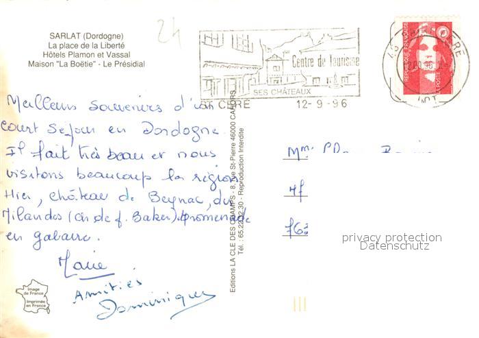 13231639 carte postale Sarlat-la-Caneda Place de la Liberte Hotels Plamon Vassal postalisch gelaufen Erhaltung siehe scans [NatalD47] KatCode: 11170024424520