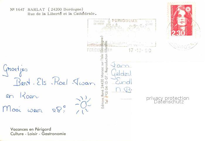 12698420 carte postale Sarlat-la-Caneda Rue de la Liberte et la Cathedrale postalisch gelaufen Erhaltung siehe scans [WerneD78] KatCode: 11170024424520