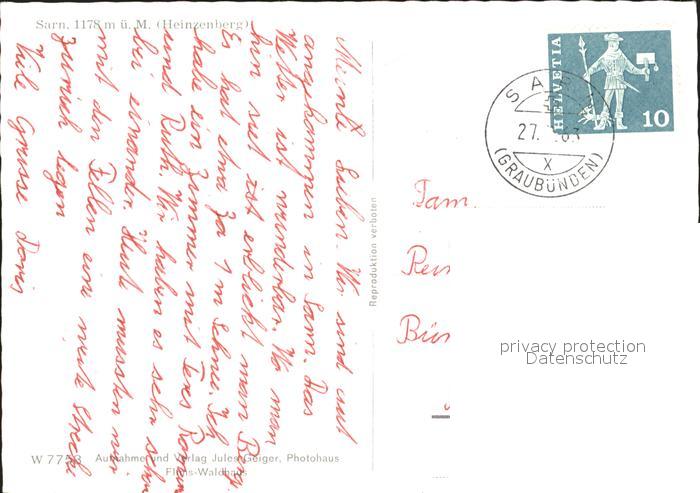 11651471 alte Postkarte Sarn Hinterrhein Dorfpartie postalisch gelaufen Erhaltung siehe scans KatCode: 11470100315084