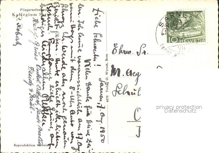 11640745 alte Postkarte Sarnen Fliegeraufnahme Kollegium postalisch gelaufen Erhaltung siehe scans KatCode: 11470150440318