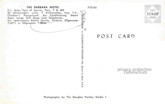 74055430 Sarnia Ontario Canada The Barbara Motel Park postalisch nicht gelaufen Erhaltung siehe scans [WerneD78] KatCode: 14110