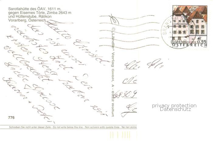 73363397 alte Postkarte Sarotlahuette gegen Eisernes Toerle Zimba Huettenstube Raetikon postalisch gelaufen Erhaltung siehe scans [FriedD77] KatCode: 11390341080103