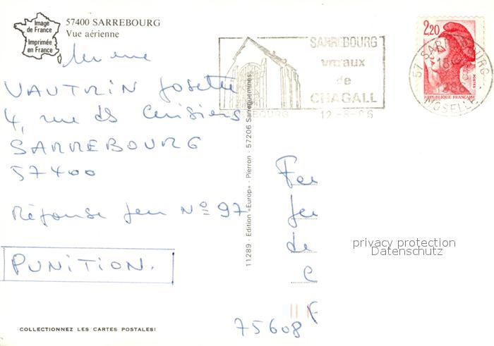 13153277 carte postale Sarrebourg Vue aérienne postalisch gelaufen Erhaltung siehe scans [FriedD77] KatCode: 11170057557630
