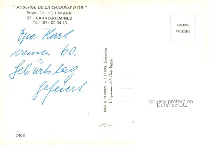 13224322 Sarreguemines Auberge de la Charrue d Or Restaurant postalisch nicht gelaufen Erhaltung siehe scans [FriedD77] KatCode: 11170057657631