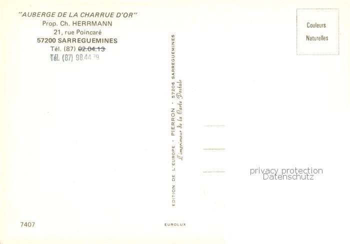 13786182 Sarreguemines Auberge de la Charrue d Or postalisch nicht gelaufen Erhaltung siehe scans [FriedD77] Frie Katcode 11170057657631