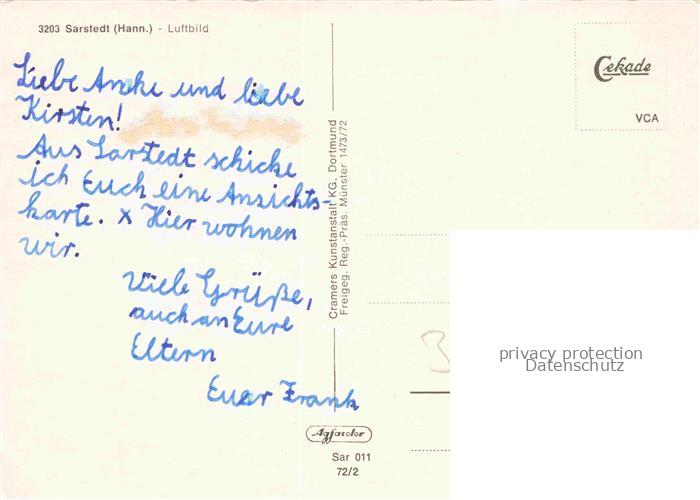 74096059 Sarstedt Hildesheim Niedersachsen Fliegeraufnahme postalisch nicht gelaufen Erhaltung siehe scans [WerneD78] KatCode: 11110003254028