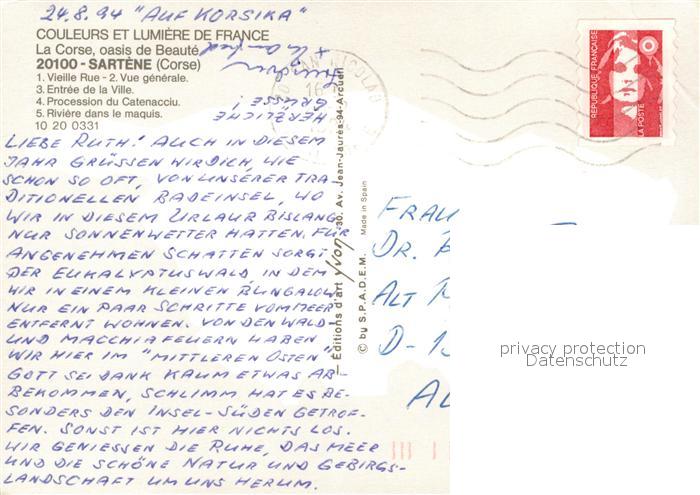 13357199 carte postale Sartene Vieille rue Entrée de la ville Procession du Catenacciu Rivière dans le maquis postalisch gelaufen Erhaltung siehe scans [FriedD77] KatCode: 1117002A42A272