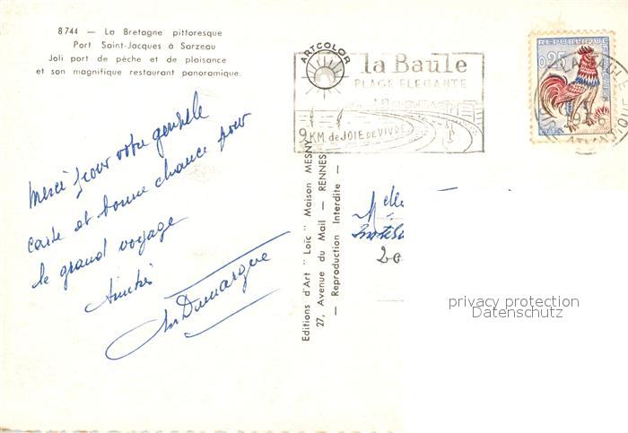 13581924 Sarzeau Port Saint Jacques des voiliers postalisch gelaufen Erhaltung siehe scans [FriedD77] carte postale Frie Katcode 11170056356240
