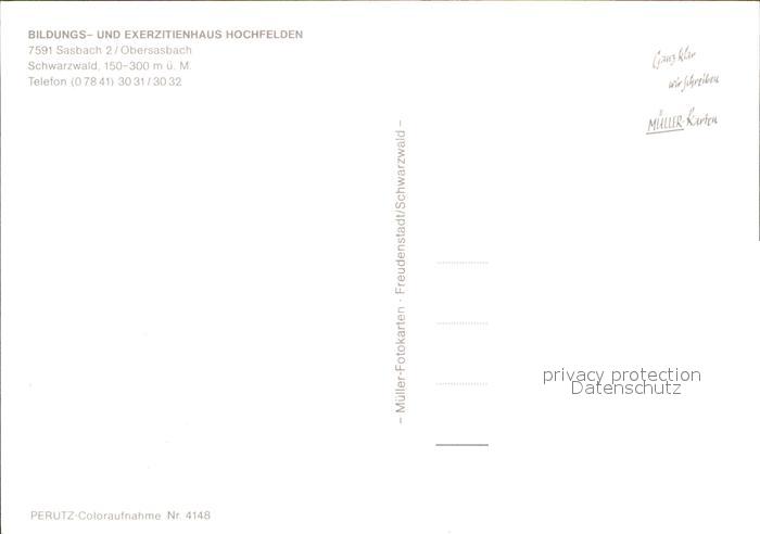 71929529 Sasbach Achern Bildungs Exerzitienhaus Hochfelden postalisch nicht gelaufen Erhaltung siehe scans KatCode: 11110008317116