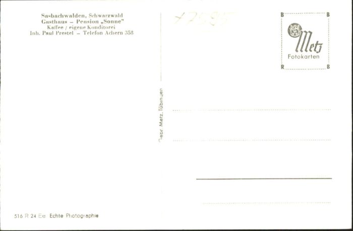 40764664 Sasbachwalden Achern Ortenaukreis BW Gasthaus Pension Sonne postalisch nicht gelaufen Alte Ansichtskarte Postkarte Katcode 11110008317118
