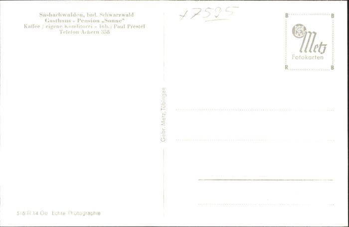 40764641 Sasbachwalden Achern Ortenaukreis BW Gasthaus Pension Sonne postalisch nicht gelaufen Alte Ansichtskarte Postkarte Katcode 11110008317118