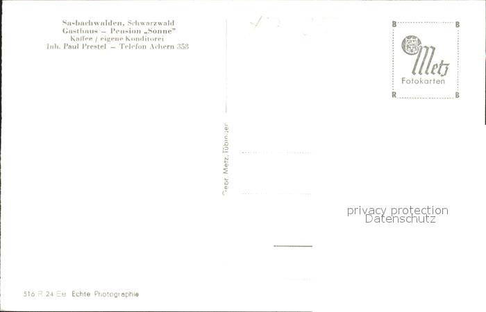 41767510 Sasbachwalden Achern Ortenaukreis BW Gasthaus Pension Sonne Kaffe postalisch nicht gelaufen Erhaltung siehe scans KatCode: 11110008317118