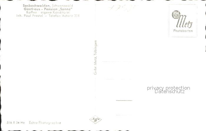41767513 Sasbachwalden Achern Ortenaukreis BW Gasthaus Pension Sonne postalisch nicht gelaufen KatCode: 11110008317118
