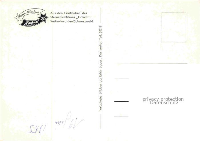 74021039 Sasbachwalden Achern Ortenaukreis BW Gaststube des Sternenwirtshaus Hohritt postalisch nicht gelaufen Erhaltung siehe scans [FriedD77] Frie Katcode 11110008317118
