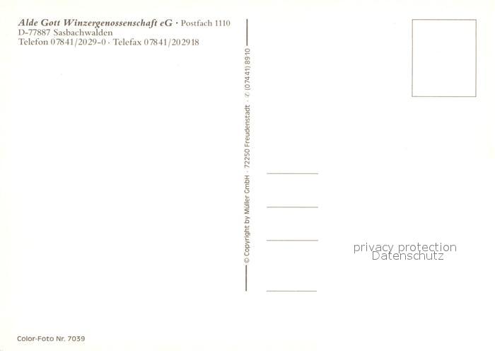 72929681 Sasbachwalden Alde Gott Winzergenossenschaft postalisch nicht gelaufen Erhaltung siehe scans [KathaD81] KatCode: 11110008317118