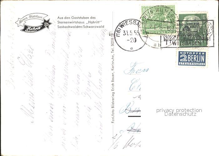alte Postkarte Sasbachwalden Aus den Gaststuben des Sternenwirtshaus Hohritt postalisch gelaufen Erhaltung siehe scans