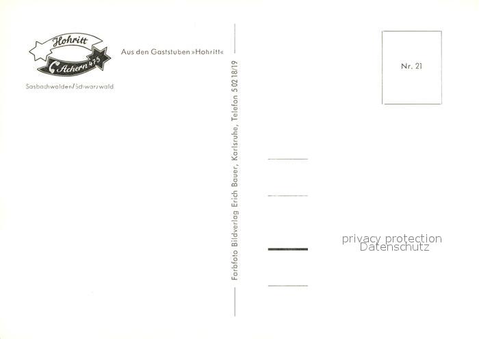 73169072 Sasbachwalden Aus den Gaststuben des Sternenwirtshaus Hohritt postalisch nicht gelaufen Erhaltung siehe scans [WerneD78] KatCode: 11110008317118