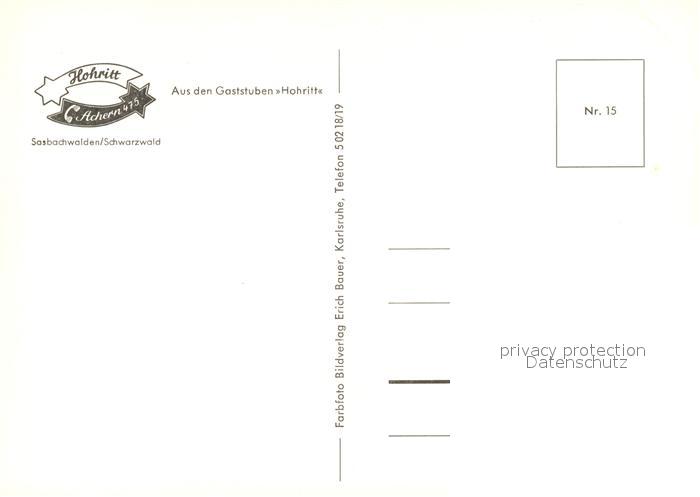73169065 Sasbachwalden Aus den Gaststuben Hohritt postalisch nicht gelaufen Erhaltung siehe scans [WerneD78] KatCode: 11110008317118
