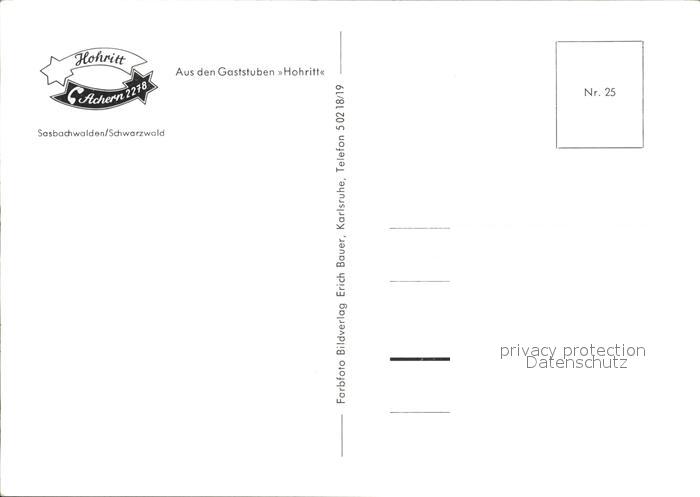 72308986 Sasbachwalden Aus den Gaststuben Hohritt postalisch nicht gelaufen Erhaltung siehe scans KatCode: 11110008317118