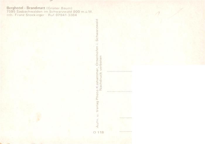 73888946 Sasbachwalden Berghotel Brandmatt postalisch nicht gelaufen Erhaltung siehe scans [WerneD78] KatCode: 11110008317118