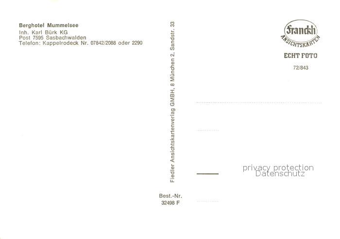 73720347 Sasbachwalden Berghotel Die Lilien am Mummelsee Gedicht August Schnezler postalisch nicht gelaufen Erhaltung siehe scans [FriedD77] KatCode: 11110008317118