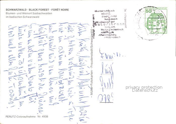 72373513 alte Postkarte Sasbachwalden Blumenort Weinort Schwarzwald postalisch gelaufen Erhaltung siehe scans KatCode: 11110008317118